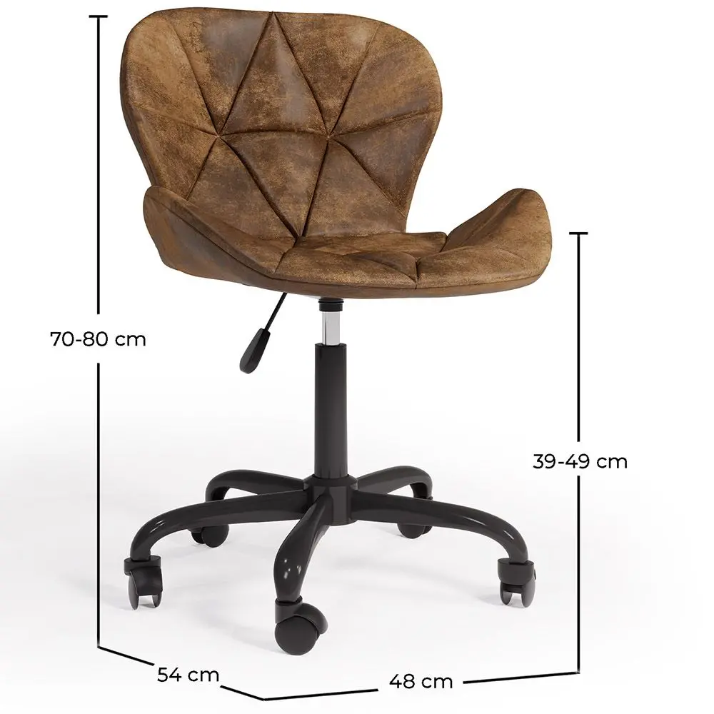 Dompel jezelf onder in comfort en elegantie met deze kantoorstoel in vintage design. De bekleding in veganistisch leer is niet alleen een ethische keuze, maar voegt ook een vleugje luxe toe aan je werkruimte. De soepele wielen bieden moeiteloze mobiliteit, waardoor je gemakkelijk tussen taken kunt bewegen. De verstelbare hoogte, in combinatie met de ergonomische rugleuning, geeft je volledige controle over je werkhouding, en zorgt voor een comfortabele en gezonde houding. De zwarte metalen pootstructuur is niet alleen robuust en duurzaam, maar voegt ook een vleugje moderniteit toe aan de algehele esthetiek van de stoel. Ervaar de perfecte fusie van functionaliteit en stijl in elk werkmoment met deze uitzonderlijke kantoorstoel.