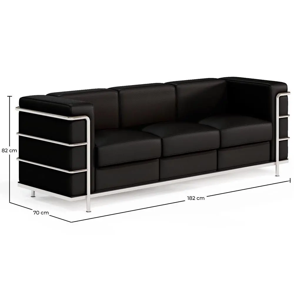 Met zitcapaciteit voor drie personen biedt deze vegan leren bank voldoende ruimte voor uw klanten, collega's of gasten om zich comfortabel te voelen. De gewatteerde zittingen en rugleuningen bieden stabiele ondersteuning en een optimaal niveau van comfort, waardoor lange uren wachten of vergaderen mogelijk zijn. De hoogwaardige kunstleren bekleding biedt niet alleen een luxueuze uitstraling vergelijkbaar met echt leer, maar is ook gemakkelijk schoon te maken en te onderhouden. Dit is vooral belangrijk in commerciële omgevingen waar regelmatig schoonmaken essentieel is. Het slijtvaste kunstleer zorgt ervoor dat onze Bour bank zijn onberispelijke uiterlijk behoudt, zelfs bij intensief gebruik. De bank heeft een stevige en duurzame metalen frame dat stabiliteit en duurzaamheid op lange termijn garandeert. Het strakke en moderne ontwerp past zich aan elke omgeving aan, van directiekantoren of wachtruimtes tot receptiegebieden van luxe hotels.