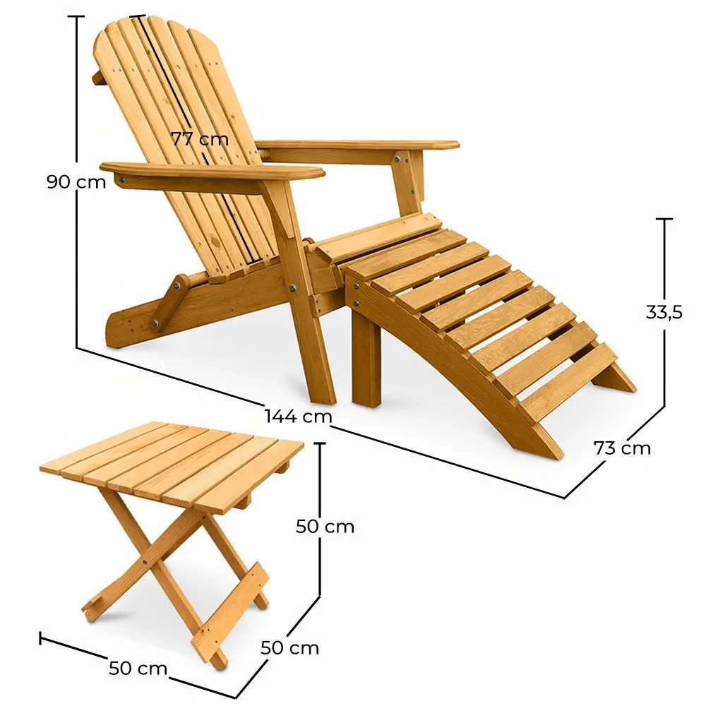 Deze duurzame set van tuinstoel, tafel en voetensteun is ook geschikt voor een hotel of restaurant, en omdat het gemaakt is van hemlockhout, zal het bestand zijn tegen alle weersomstandigheden. Met zijn tijdloze, klassieke ontwerp is het niet alleen comfortabel maar ook aantrekkelijk. De houten tafel is precies de juiste maat om naast de stoel te plaatsen.