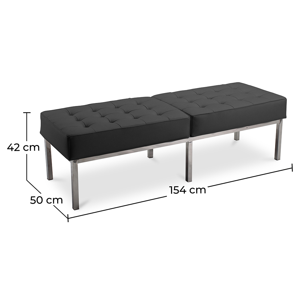 De zitting is gepositioneerd op een stalen poot die perfect past bij de kleur van de leren bekleding en het moderniteit en elegantie verleent. Deze 2-zitsbank is zowel breed als comfortabel en u zult zich er zeer ontspannen in voelen.