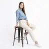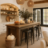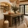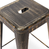 Met een hoogte van 76 cm is het ideaal voor hoge aanrechten (rond 105 cm) en past het gemakkelijk in interieurs die op zoek zijn naar duurzaam meubilair met karakter. De metalen afwerking geeft het een solide gevoel, terwijl het rugloze ontwerp het een praktische keuze maakt voor ruimtebesparing zonder stabiliteit op te offeren.
