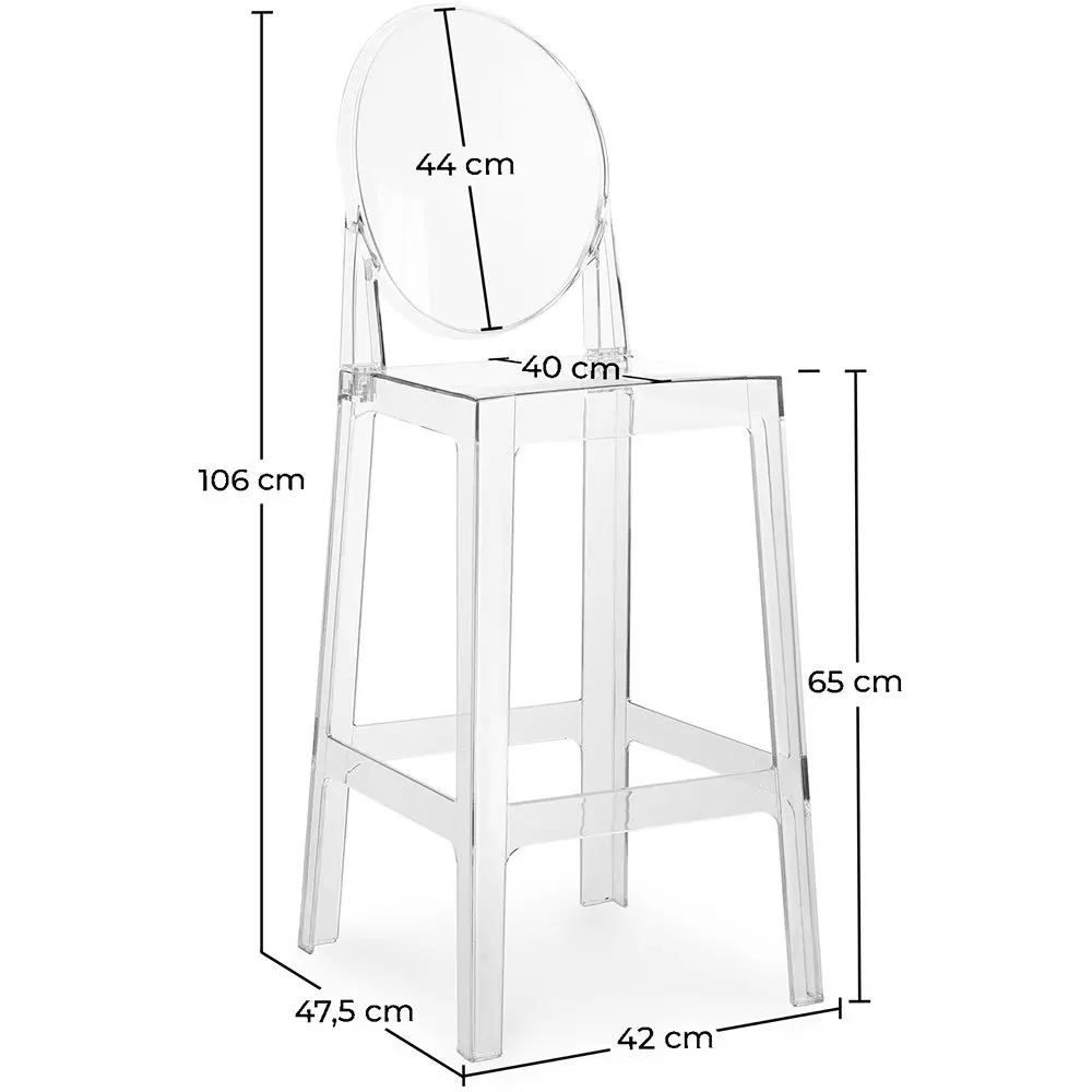 Deze elegante barkruk in Victoire-stijl is gemaakt van PC. Het is een zeer comfortabele, stabiele en stevige barkruk. De zithoogte is 65 cm, waardoor hij perfect is voor de keuken, bar of toonbank. De barkruk geïnspireerd op de Victoire-stijl past perfect bij elke interieurstijl.