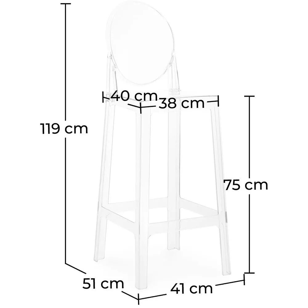 Elegante barstoel geïnspireerd door de Victoire collectie. Het is 75cm hoog en het is gemaakt van PC. Deze kruk is ideaal voor het keukenblad, elegant en verfijnd, het zal perfect werken met elke stijl van decoratie. Dit is een stabiele en zeer stevige barstoel. U bent misschien ook geïnteresseerd in de 64cm hoge Victoire kruk.