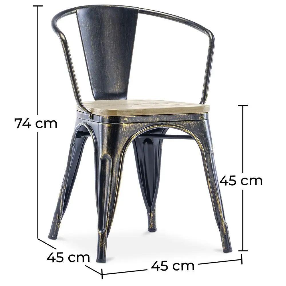 Zeer comfortabele en extreem lichte Bistrot Metalix stijl stoel gemaakt van vintage ijzer en licht hout. Deze elegant ontworpen stoel kan perfect worden gebruikt in restaurants en bars als een counterstoel. Hij is gemakkelijk stapelbaar en daardoor eenvoudiger op te bergen en te verplaatsen, wat wordt versterkt door het verminderde gewicht.