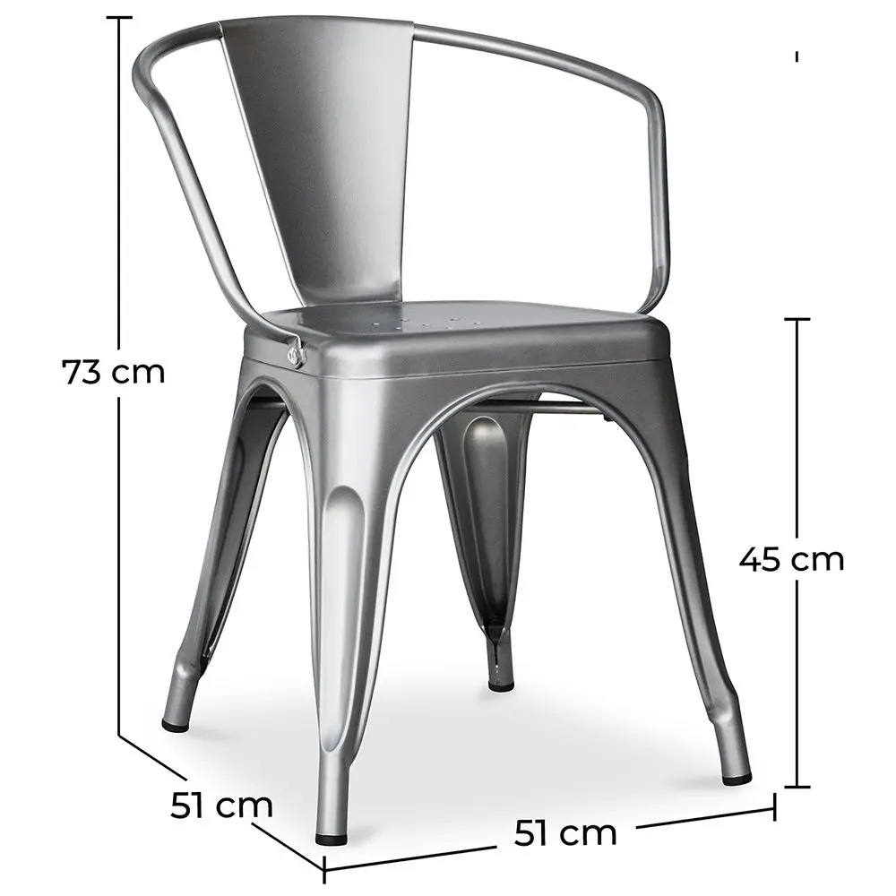 Hij creëerde verschillende praktische en nuttige objecten in een industrieel ontwerp zoals deze tijdloze metalen stoel. Het industriële ontwerp zal karakter geven aan je huis. Robuust en lichtgewicht, het is ook zeer comfortabel en kan rond de tafel in je woonkamer in een loft worden gebruikt. Voor een meer chique touch kun je een klein kussen toevoegen dat qua kleur bij je decor past. Het is een veelzijdige stoel, eenvoudig en comfortabel, het zal in elk interieur passen en je zult verleid worden door deze stoel. Een goede investering op de lange termijn.