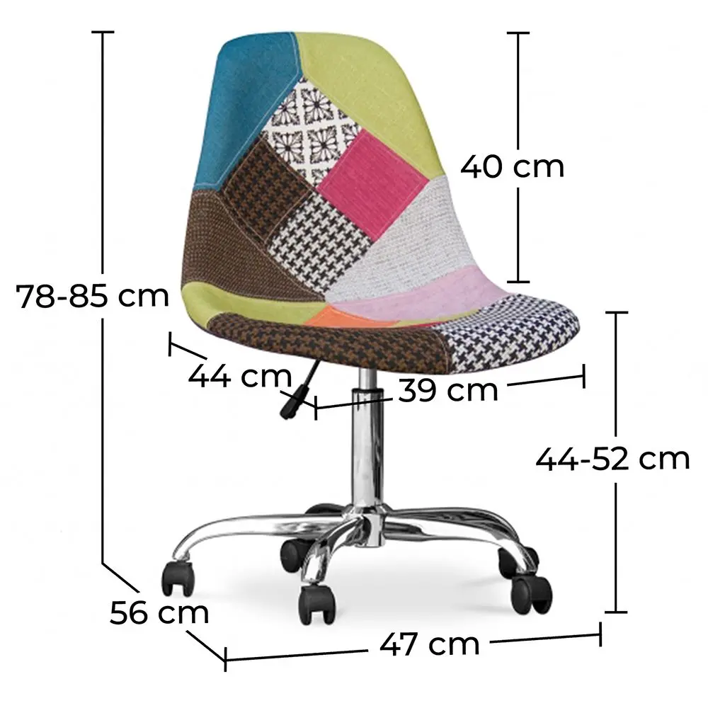 Hou je van patchwork en ben je op zoek naar een nieuwe bureaustoel? Dan zou deze patchwork bureaustoel wel eens je volgende toevoeging aan je huis kunnen zijn. Let op zijn ultra-strakke uitstraling. Het meest opvallend is misschien wel het zitmateriaal, dat bekleed is met patchwork stof. Het heeft een overvloed aan charmante kleuren. Wil je je volgende bureaustoel gemakkelijk door je kantoor of woonkamer verplaatsen? Geen probleem! Dat kan gemakkelijk met deze, want hij heeft vijf stalen poten met wielen. Het is ook eenvoudig om de stoel in te stellen, met zijn draaibare zitting en zijn verstelbare hoogte.