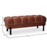 Breng onderscheid en comfort in uw huis met deze Chesterfield stijl bank, bekleed met zachte fluweel en een gecapitonneerd ontwerp dat tijdloze elegantie weerspiegelt. De stevige ijzeren poten bieden stabiliteit en een klassieke toets, ideaal voor het aanvullen van decor in woonkamers, slaapkamers of gangen. Een veelzijdig stuk dat traditie combineert met een moderne twist, perfect voor degenen die op zoek zijn naar een decoratief meubelstuk dat zowel luxe als functionaliteit biedt.