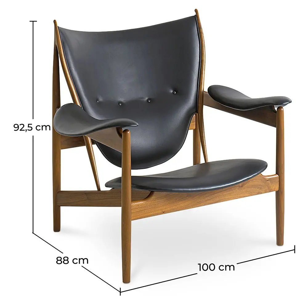Originaliteit is zeker de kwaliteit die deze Chief fauteuil het beste definieert, geïnspireerd door het Scandinavische ontwerp. Het is een zeer comfortabele en duurzame hoge kwaliteit fauteuil. Het is gemaakt van massief essen hout, en de rugleuning, de zitting en de armleuningen zijn bekleed met premium leer.