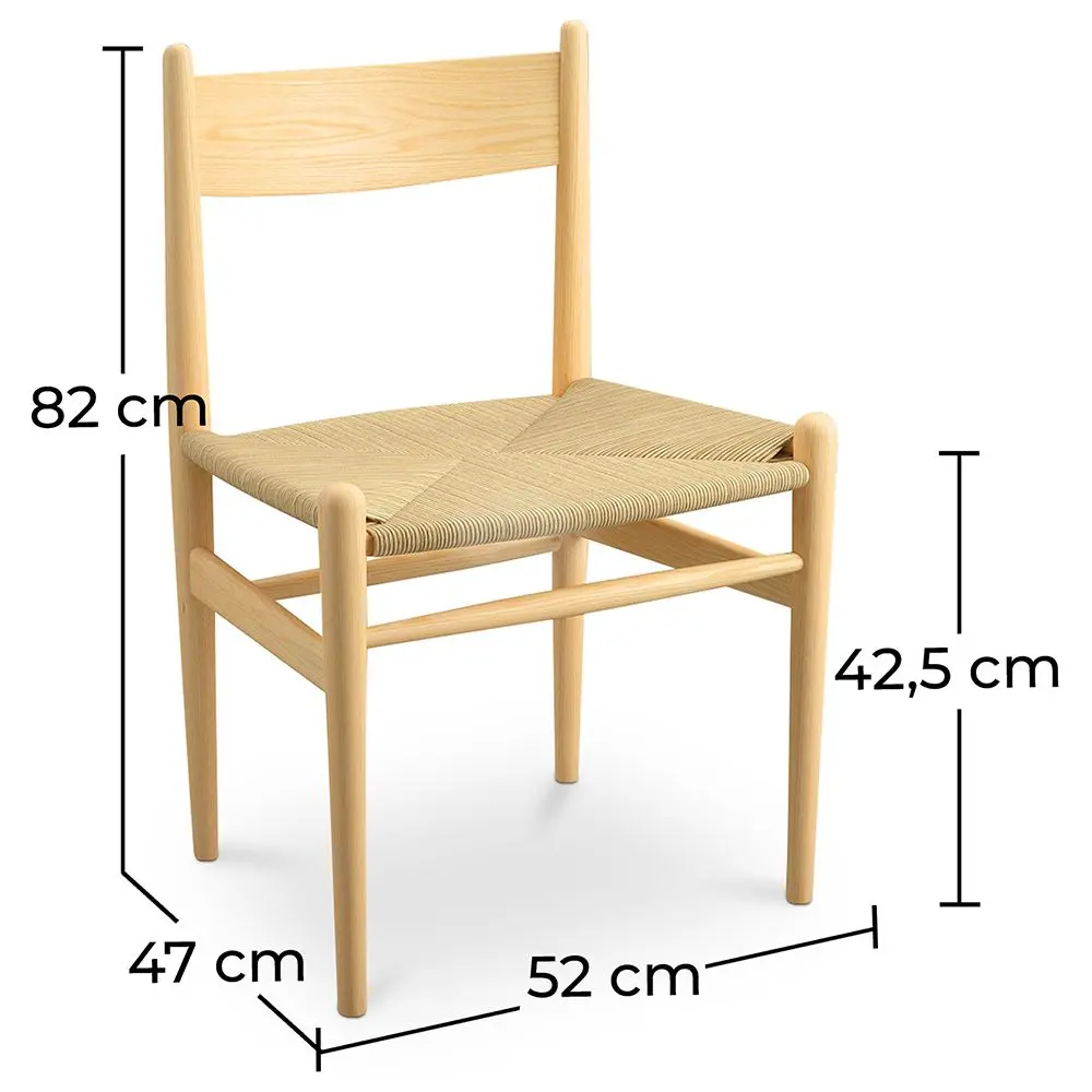 Perfect om een klassiek tintje aan uw eetkamer of keuken te geven, de CW36 stoel is comfortabel, stabiel en zeer robuust. Het bestaat uit een structuur van massief essen hout en een gevlochten zitting van natuurlijk touw. Deze eetkamerstoel doet denken aan klassieke keukens van decennia geleden stoelen.