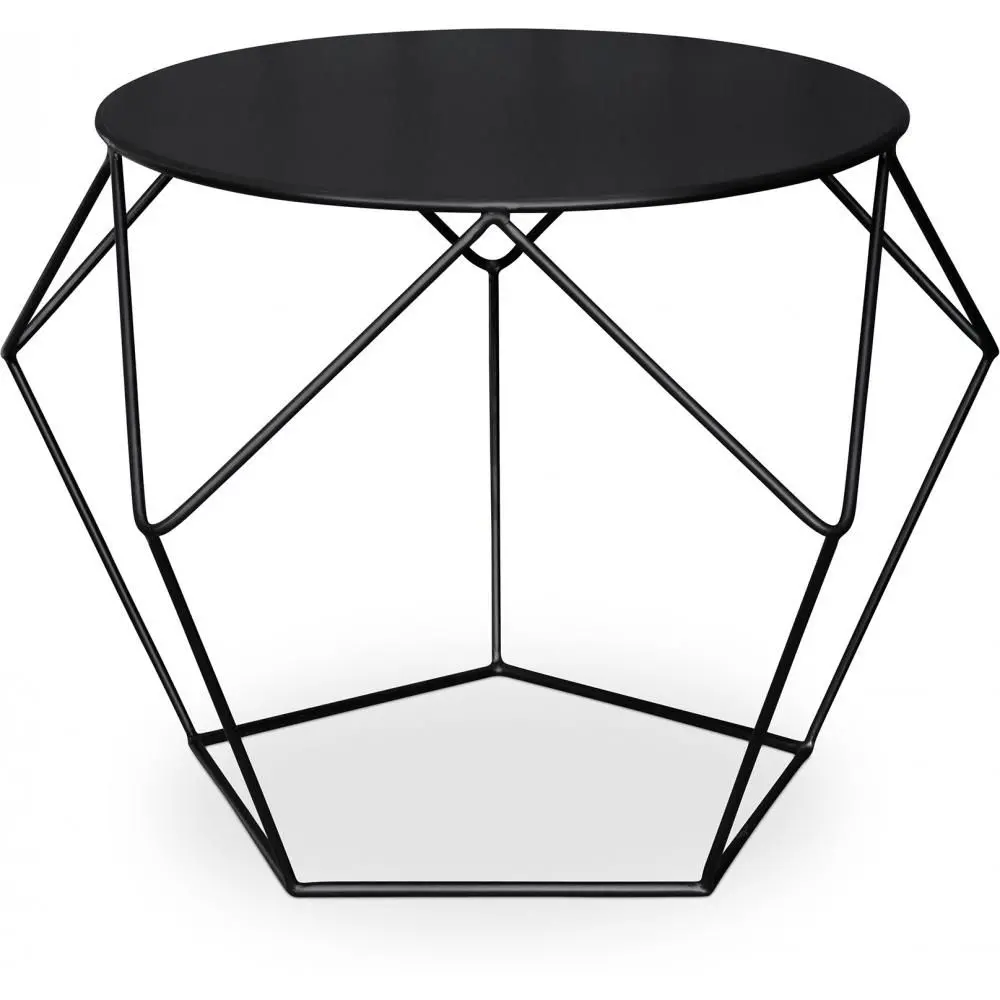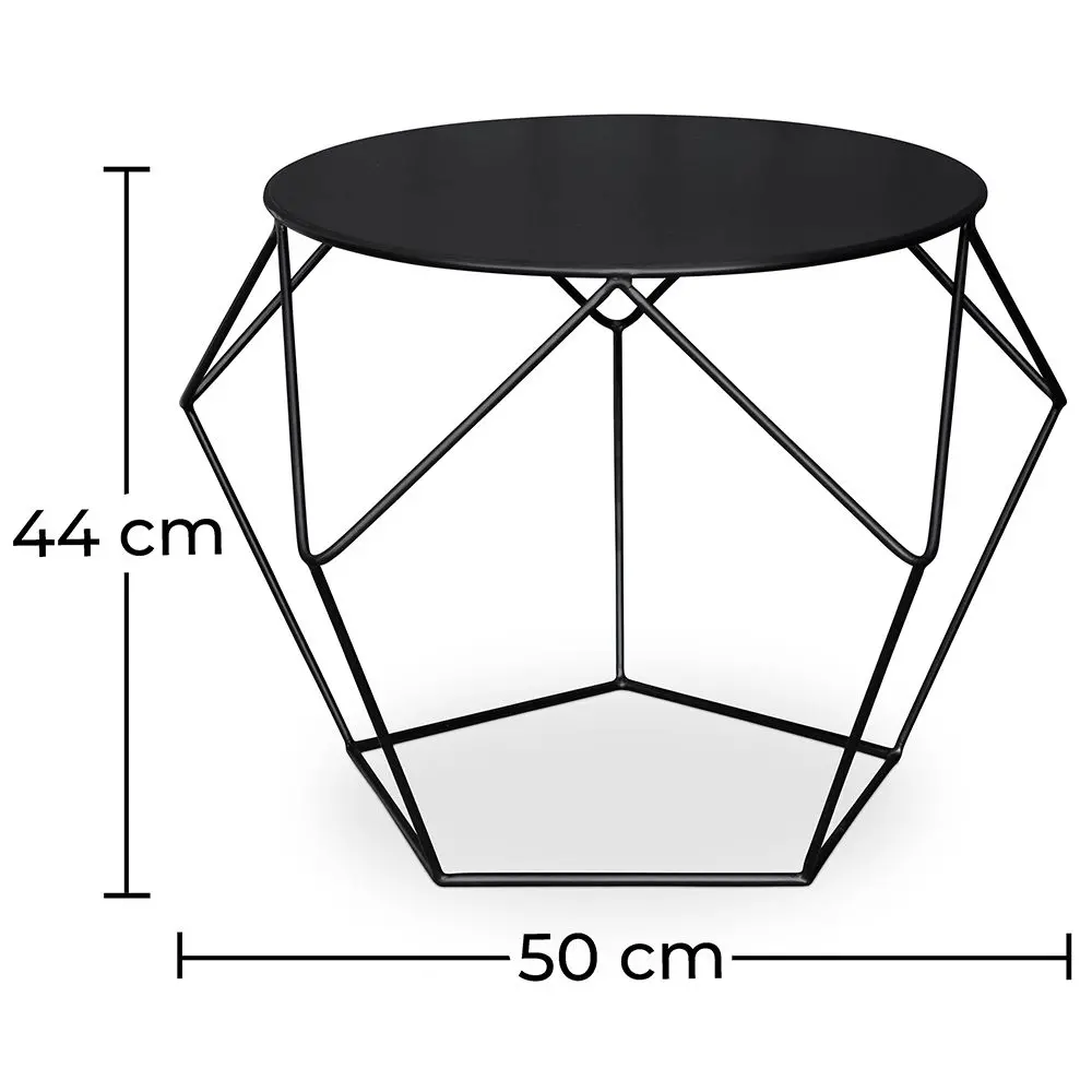 Dit bijzettafeltje gemaakt van metaal is 44 centimeter hoog. Het is gevormd met hoog resistente stalen staven en een ronde oppervlakte van 50 cm diameter.