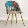 Het comfort van de zitgedeelte is cruciaal voor het maken van een gedenkwaardige eetkamerstoel, of het nu in een hotel, restaurant of thuis is. Deze keukenstoel is gemaakt van een metalen frame met houten transfer schildering en bekleed met patchwork stof.
