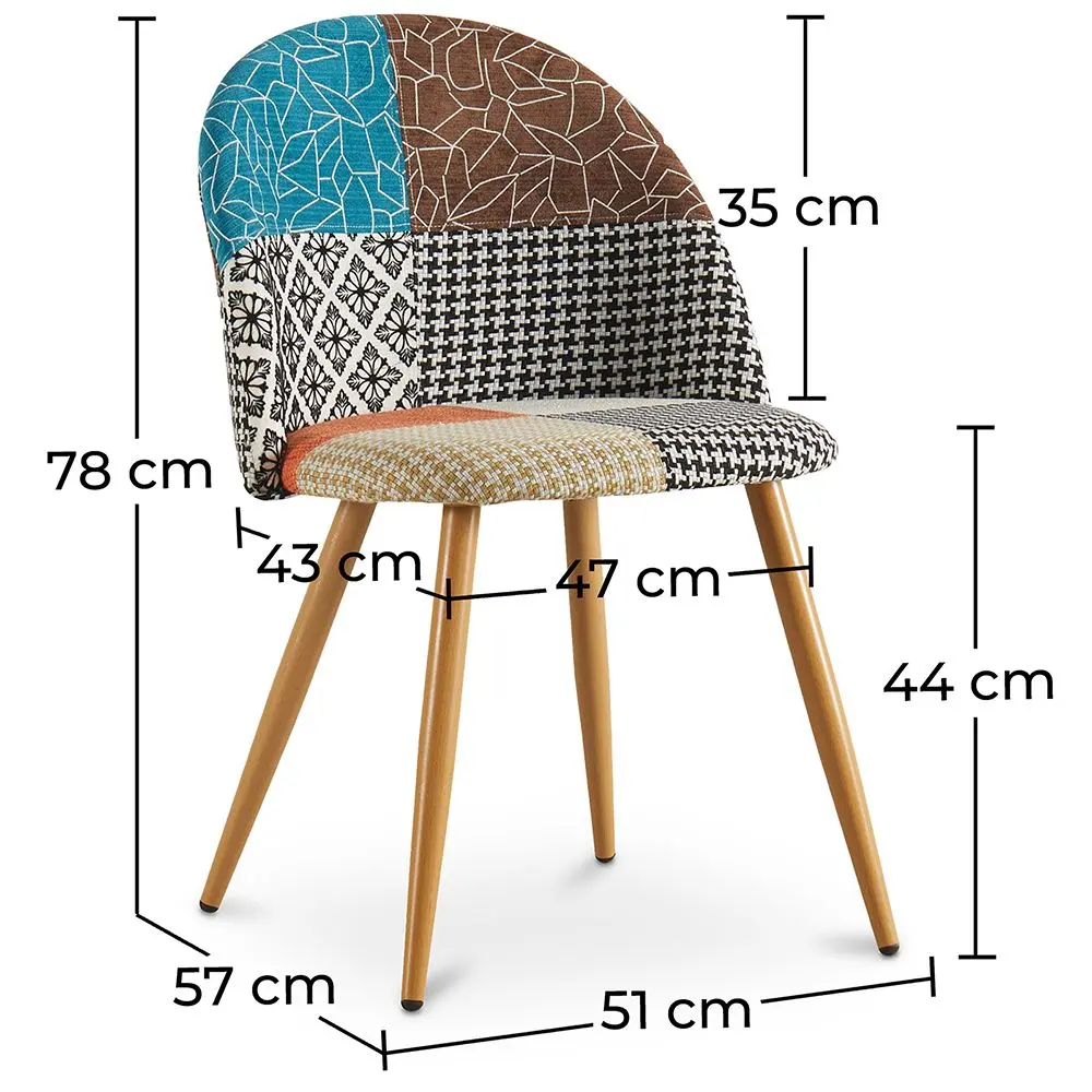 Het concept is gericht op eenvoud, maar het heeft de uitstraling van een luxe stoel. Het past goed bij het moderne idee om eetkamermeubilair te gebruiken als onderdeel van interieurontwerp. Dit is de perfecte patchwork stoel om toe te voegen aan je eetruimte voor de beste ervaringen!