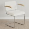 Witgekalkte bouclé bekleding met een metalen poot is een geweldige combinatie voor een eetkamerstoel. Deze comfortabele en stabiele stoel is een trendy stuk. Een perfecte silhouet voor een eetkamer.