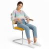 Introduceer deze eetkamerstoel in je eetkamer. Het heeft een stalen buis C-vormige poot. De zitting is bekleed met fluweel, en de rotan rugleuning heeft een houten frame. Dit is een eetkamerstoel met een armleuning. Plaats het in je eetkamer of zelfs kantoor om een retro sfeer toe te voegen.