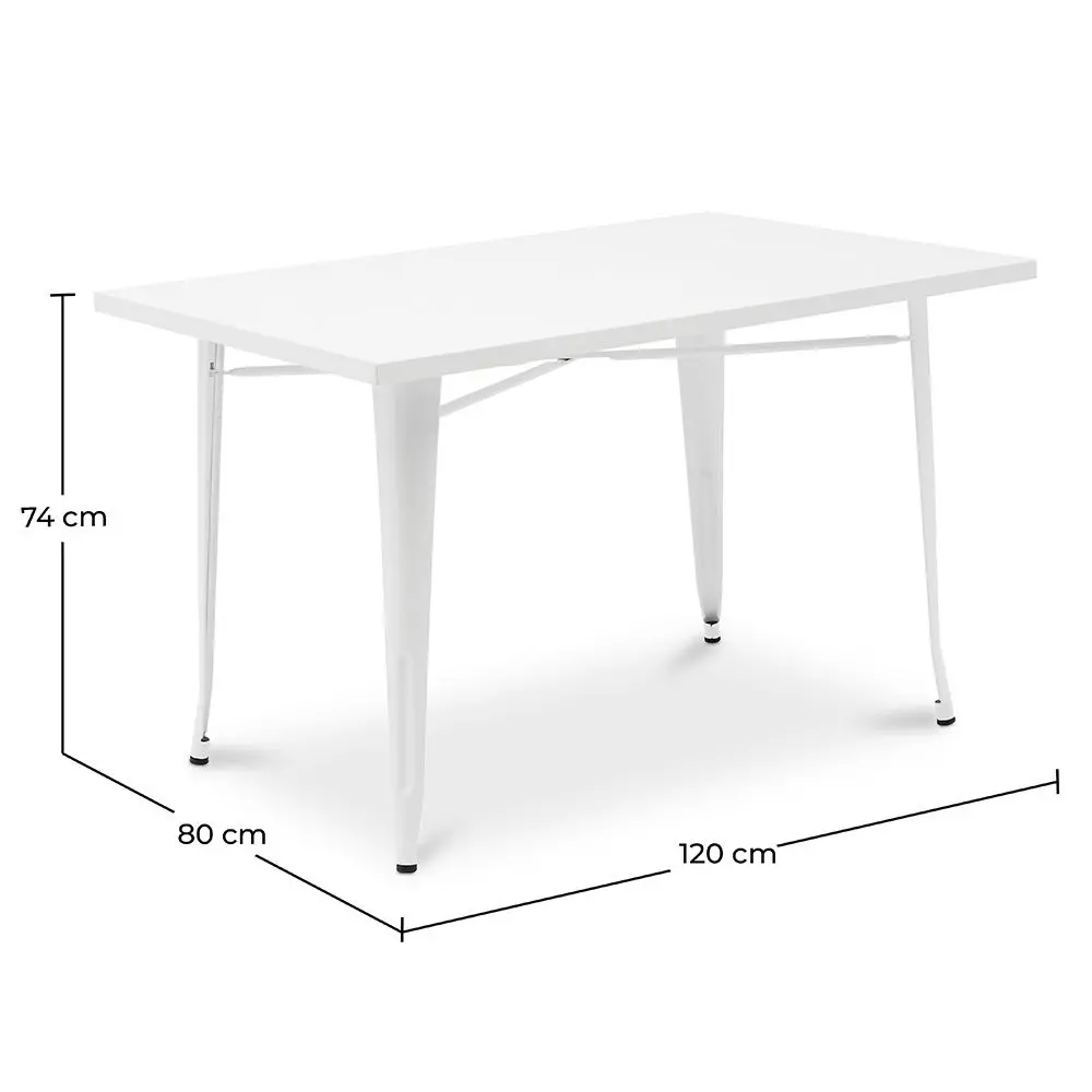 Een stevige eettafel ontworpen in Bistrot Metalix stijl. Ideaal voor een industriële of moderne stijl interieur of exterieur, zoals een bar of een restaurant, of een huis. Gemaakt van staal, met een glanzende afwerking. Deze binnen-buiten tafel is een populaire keuze voor degenen die op zoek zijn naar duurzaamheid en stijl.