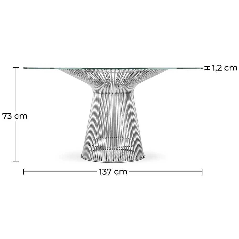 Dit is de manier waarop hij de Cylinder Eettafel maakte, waarbij het tafelblad van glas is gemaakt. Deze eettafel kan in elk deel van je huis worden gebruikt, zowel binnen als buiten.