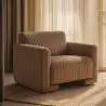 Ontdek de fauteuil in fluwelen corduroystof, ideaal voor wie comfort en moderne stijl zoekt in de woonkamer, slaapkamer of leeshoek. Het robuuste ontwerp met hoogwaardige afwerking maakt het een veelzijdig en elegant meubelstuk. De zachte en duurzame corduroy bekleding biedt een fluweelachtige textuur die warmte toevoegt, terwijl de brede zitting en de gevoerde armleuningen maximaal comfort garanderen. Perfect om je interieur aan te vullen met een eigentijdse en verfijnde touch.