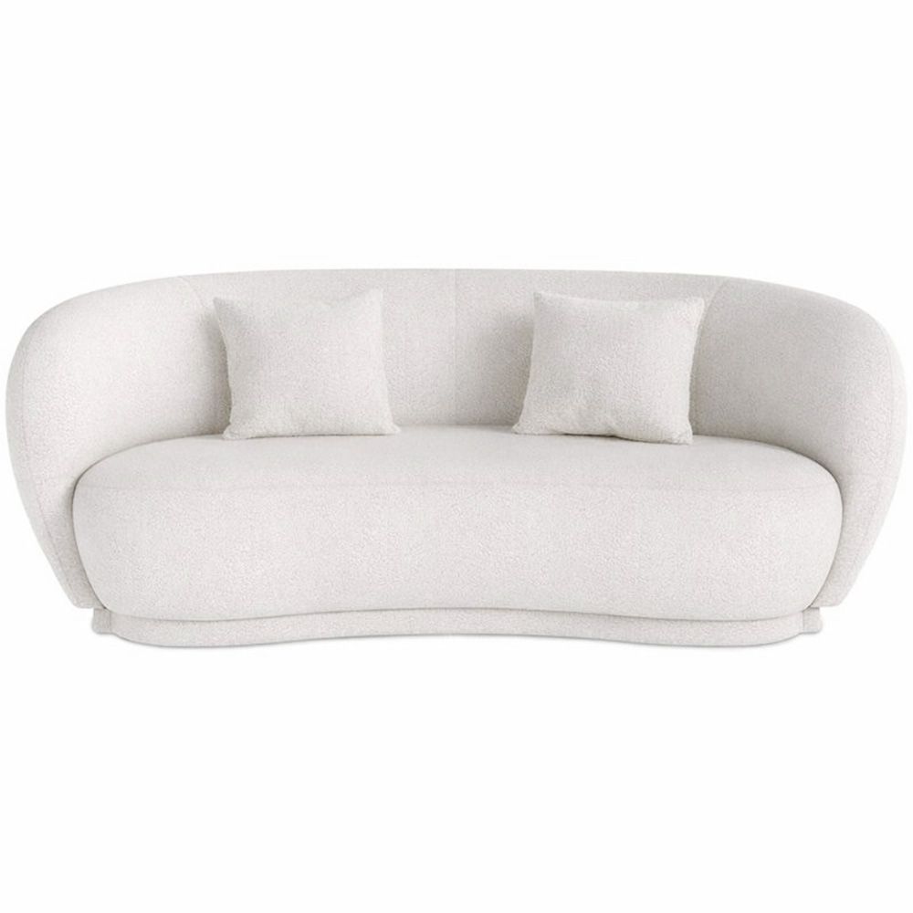 Minimalisme neemt de overhand bij deze 3-zits gebogen sofa met bouclé bekleding in een charmante off-white kleur. Doordat de poten verborgen zijn, lijkt de sofa in de lucht te zweven! Je woonkamer wordt radicaal modern als je kiest voor deze gebogen sofa, aangezien bouclé stof bekleding en organisch gevormde meubels twee van de sterkste decoratie trends zijn. Deze gebogen design sofa is perfect als je een elegante touch wilt toevoegen aan je huis of commerciële ruimte zoals een hotel, restaurant, of wachtruimte...
