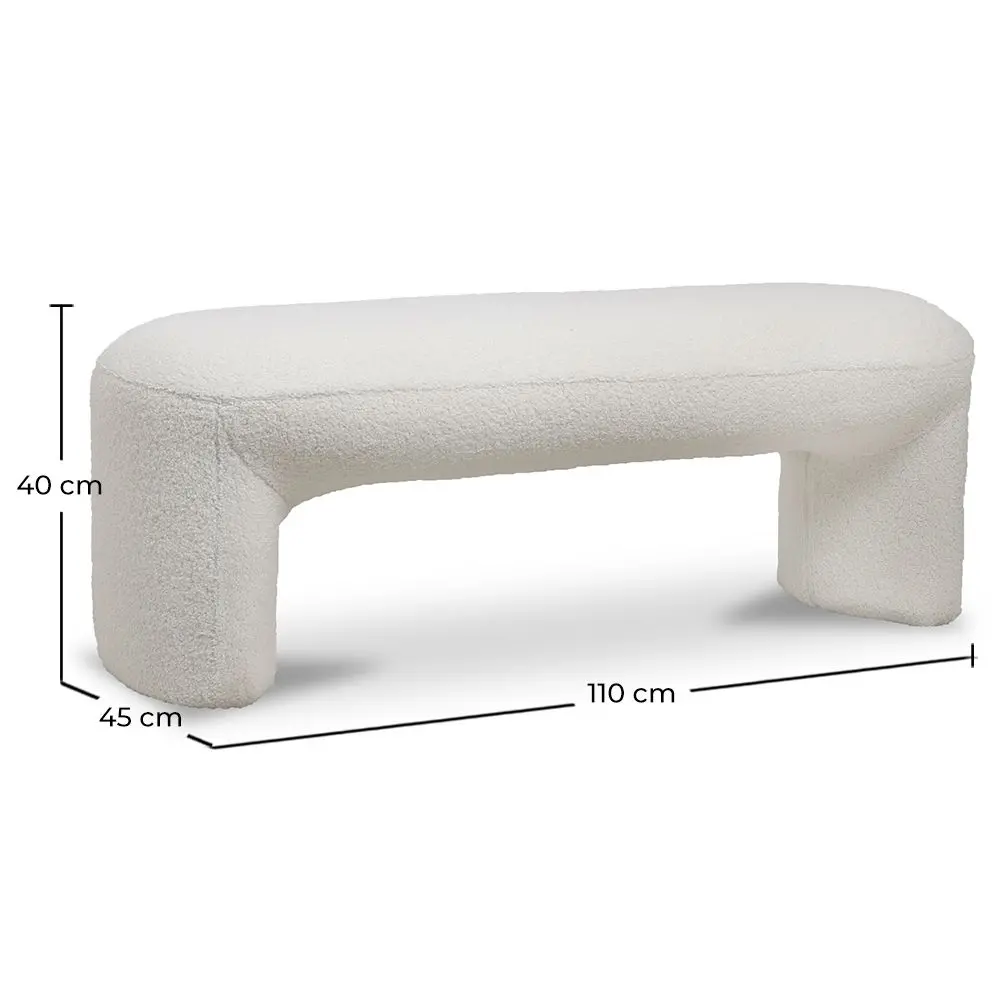 Ervaar designexcellentie met onze 110 centimeter brede bank, volledig gestoffeerd in bouclé-stof. Met een minimalistische benadering en een verfijnde esthetiek combineert deze bank elegantie en functionaliteit op een perfecte manier. De superieure kwaliteit van het bouclé-stoffen bekleding biedt niet alleen een luxueuze uitstraling, maar ook een zachte aanraking. Of het nu als middelpunt in uw woonkamer is of als een kenmerkend element in uw entree, deze bank biedt een ongeëvenaarde luxe-ervaring in elke ruimte.