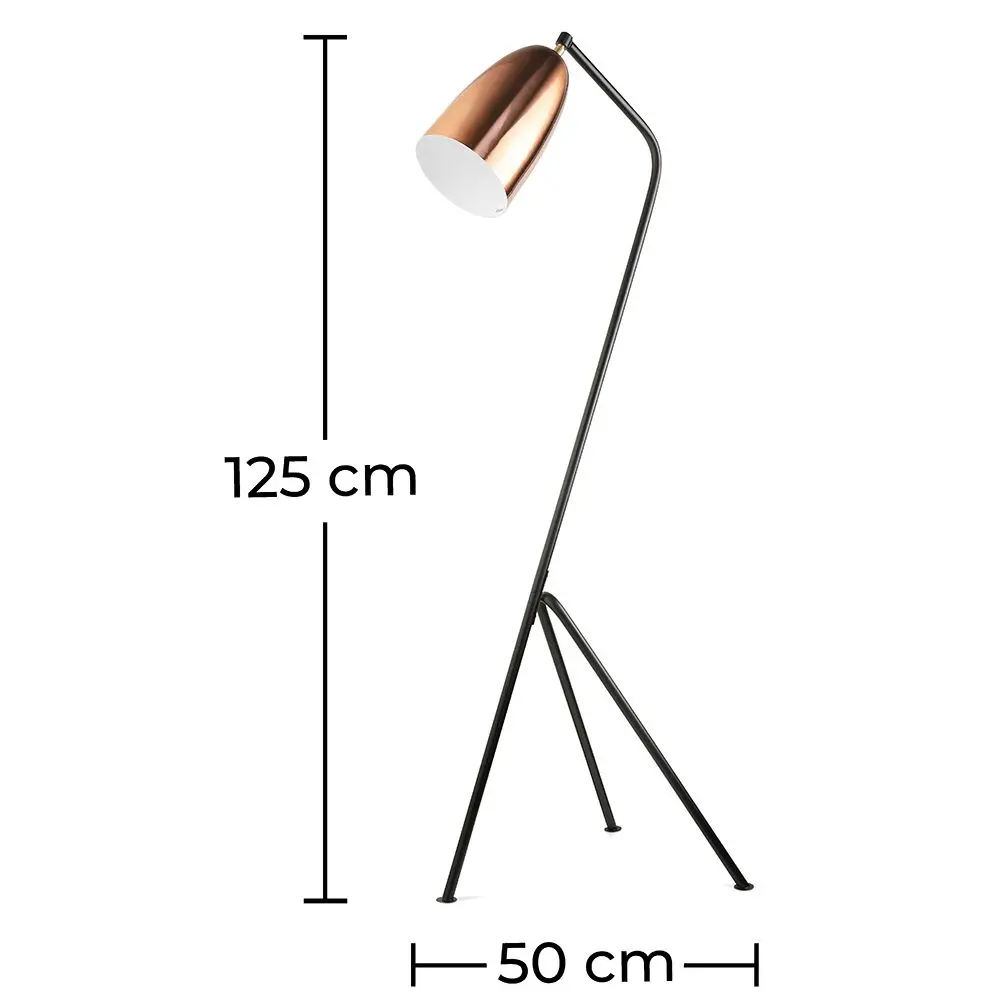 Deze vloerlamp, met zijn fijne en verfijnde ontwerp, zal uw interieur verfraaien en toch subtiel blijven. Met een hoogte van 125 cm culmineert dit accessoire voorbij de handen van uw kinderen. Zijn basis is zeer stabiel, want hij rust op drie poten.