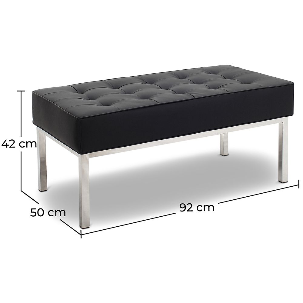 De zitting is geplaatst op een stalen poot die perfect past bij de kleur van zijn lederen bekleding en het moderniteit en elegantie verleent. Deze 2-zits bank is zowel breed als comfortabel en u zult zich er zeer ontspannen in voelen.