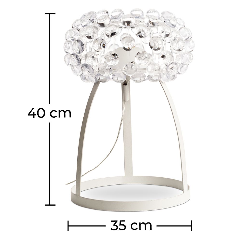 De Crystal tafellamp is gemaakt met acryl kralen die helderheid en verfijning zal geven aan uw bureau, nachtkastje of bijzettafel in de woonkamer. Het licht dat de lamp uitstraalt is warm en zacht, perfect om een gastvrije sfeer te creëren.