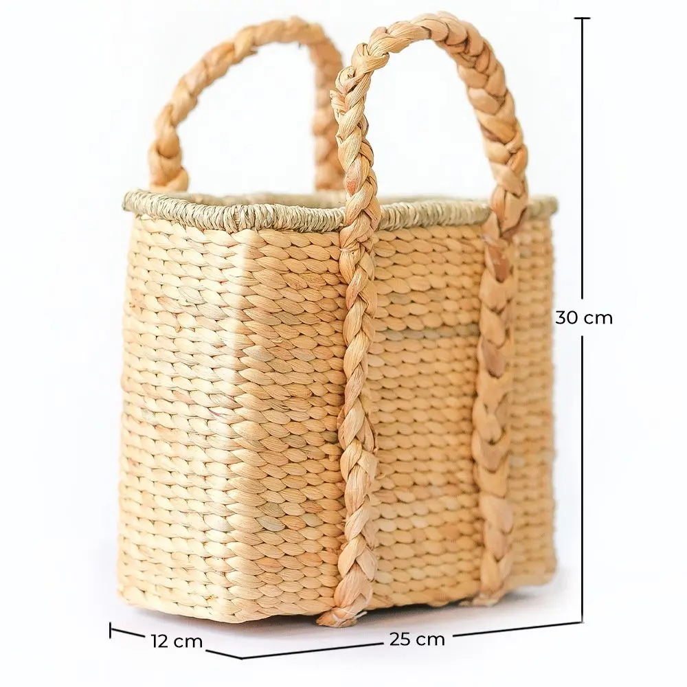Deze mooie rieten mand is een veelzijdige en stijlvolle optie om je spullen thuis te organiseren. Met zijn handgeweven ontwerp en gevlochten handvatten combineert het traditioneel vakmanschap met een moderne touch. Door zijn compacte formaat is het perfect voor het opbergen van kleine items in elke kamer, van de woonkamer tot de slaapkamer of badkamer. Gebruik het om tijdschriften, speelgoed, persoonlijke verzorgingsproducten op te bergen of zelfs als een mooie pot voor je favoriete planten. De kwaliteit van het riet zorgt voor duurzaamheid en sterkte, terwijl zijn natuurlijke en elegante uitstraling een warme touch toevoegt aan elke ruimte. Deze mand is zowel praktisch als decoratief, en zal zeker een opvallend element zijn in je interieur.