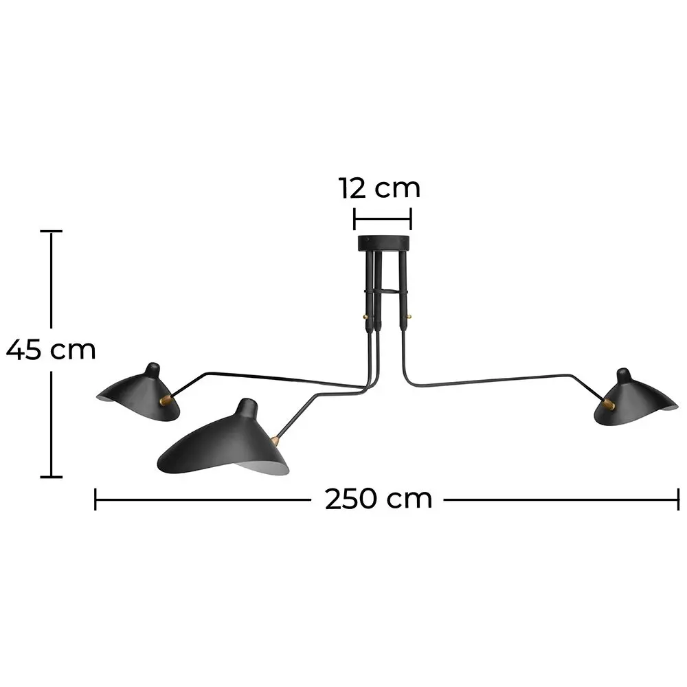 De geweldige plafondlamp MNB-R1 heeft drie armen die eindigen in 3 roterende lampenkappen. Het licht dat deze lamp uitstraalt zorgt voor een warme en gastvrije sfeer. Dankzij het grote formaat is ze ideaal voor het verlichten van grote ruimtes en open ruimtes.