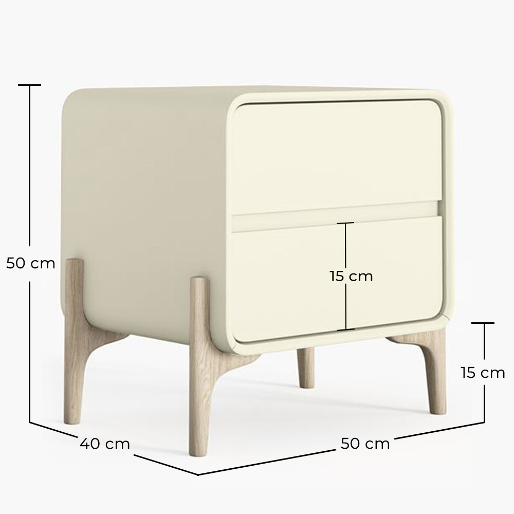 Breng stijl en functionaliteit naar je slaapkamer met dit modern Scandinavisch ontworpen nachtkastje. Gemaakt met een houten frame en bedekt met hoogwaardig kunstleer, biedt het een zachte, eigentijdse afwerking die zich aanpast aan elke omgeving: volwassenen-, tiener- of kinderkamers. De twee ruime lades maken het gemakkelijk om dingen georganiseerd te houden, terwijl de massief houten poten in een natuurlijke kleur stabiliteit en een warme, organische touch bieden.