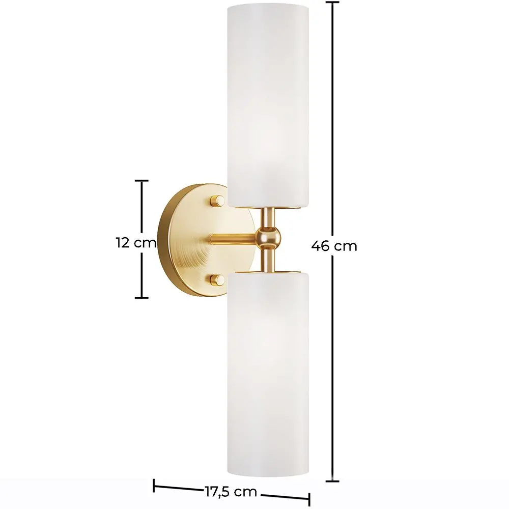 De Ouna wandlamp van verouderd goud metaal met 2 witte glazen spots is een uitzonderlijk verlichtingsstuk dat de elegantie van verouderd goud combineert met de frisheid en helderheid van wit glas. Het lichaam van de lamp is zorgvuldig vervaardigd in hoogwaardig metaal en de verouderde gouden afwerking voegt warmte en karakter toe, waardoor het een aantrekkelijk stuk is dat opvalt aan elke muur. Aan beide zijden van de lamp bevinden zich twee prachtige spots met witte glazen kapjes die het licht zacht en gelijkmatig laten verspreiden. Deze wandlamp is uiterst veelzijdig en kan zowel verticaal als horizontaal worden gemonteerd, afhankelijk van de voorkeuren van de gebruiker en de ruimtevereisten.