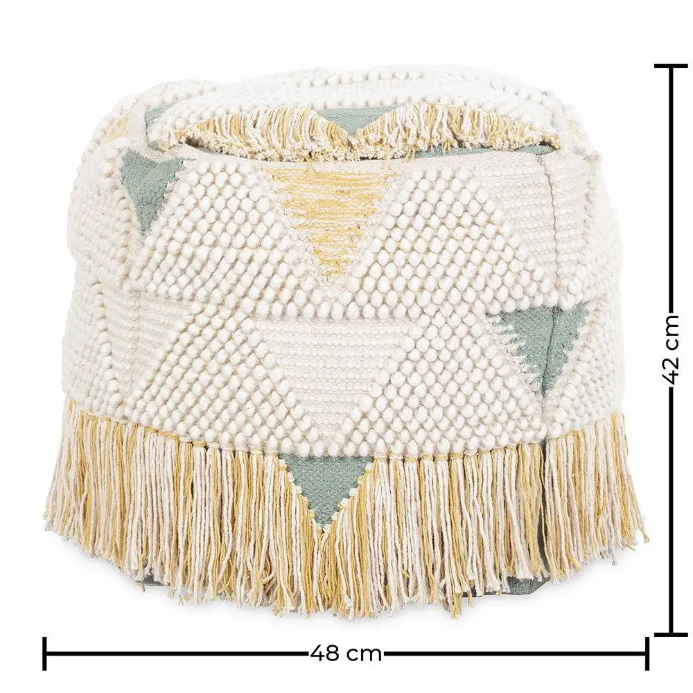 Janet is een ideale toevoeging aan elke woonruimte. Deze poef is gezellig, comfortabel, gemakkelijk te verplaatsen en trendy. Het komt in een kubusvorm, heeft thermocol bonen als vulling, en katoen en wol stof. Het patroon in boho stijl is speels en rustgevend. Perfect naast je bank als een extra zitplaats of een voetensteun.