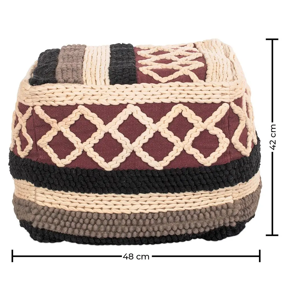 Munbay is een ideale aanvulling op elke woonruimte. Deze poef is gezellig, comfortabel, gemakkelijk te verplaatsen en trendy. Het komt in een kubusvorm, heeft thermocol korrels als vulling en katoenen stof. Het patroon in boho-stijl is speels en rustgevend. Perfect naast je bank als extra zitplaats of voetensteun.