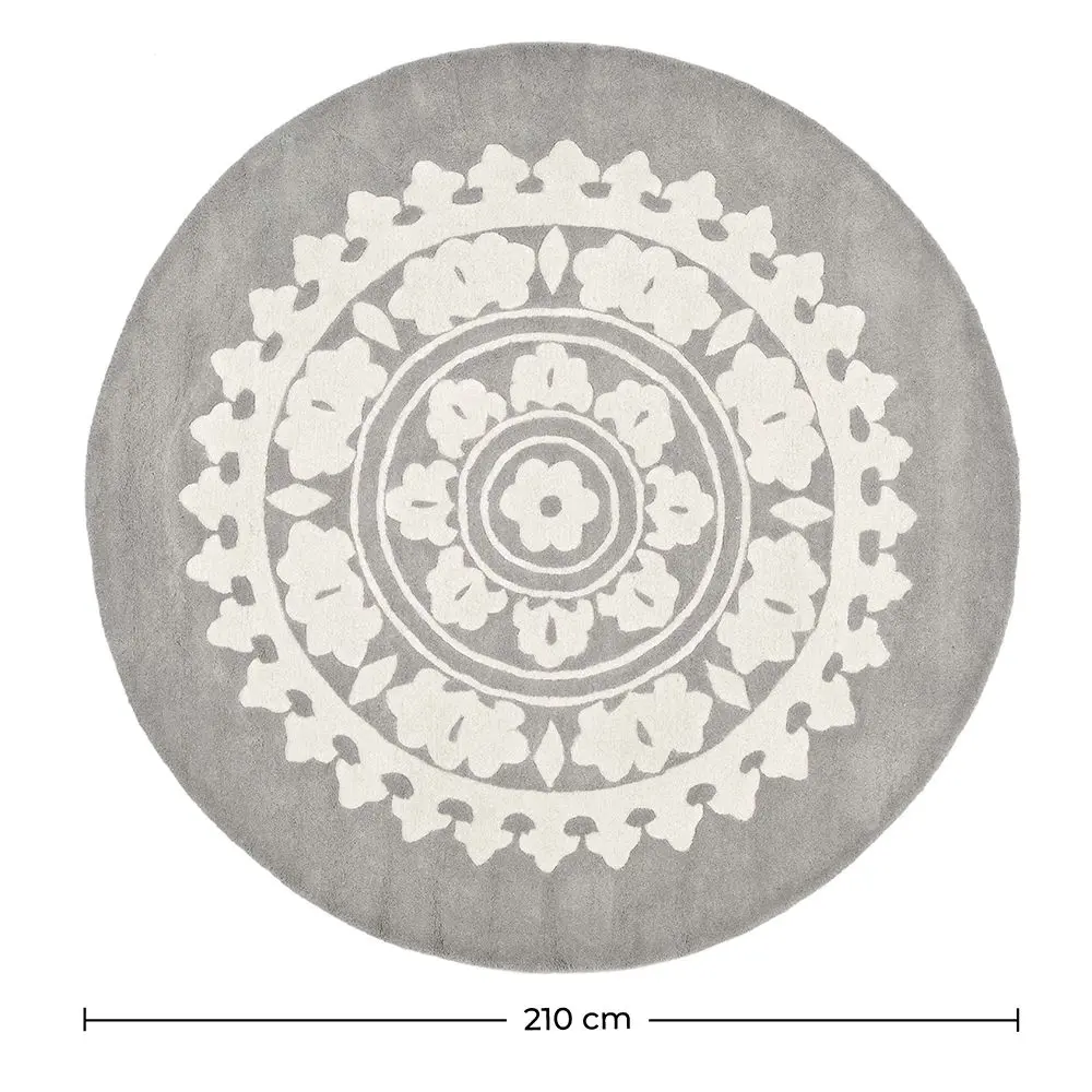 Elegant, verfijnd en eenvoudig, dit zijn de kwaliteiten die dit ronde tapijt definiëren. Het is handgemaakt door ervaren vakmensen met behulp van hoogwaardige wol. Het romantische ontwerp zal verfijning geven aan elke ruimte; dit is een tapijt met een diameter van 210 cm, dus het heeft de perfecte grootte voor kleine of grote kamers.