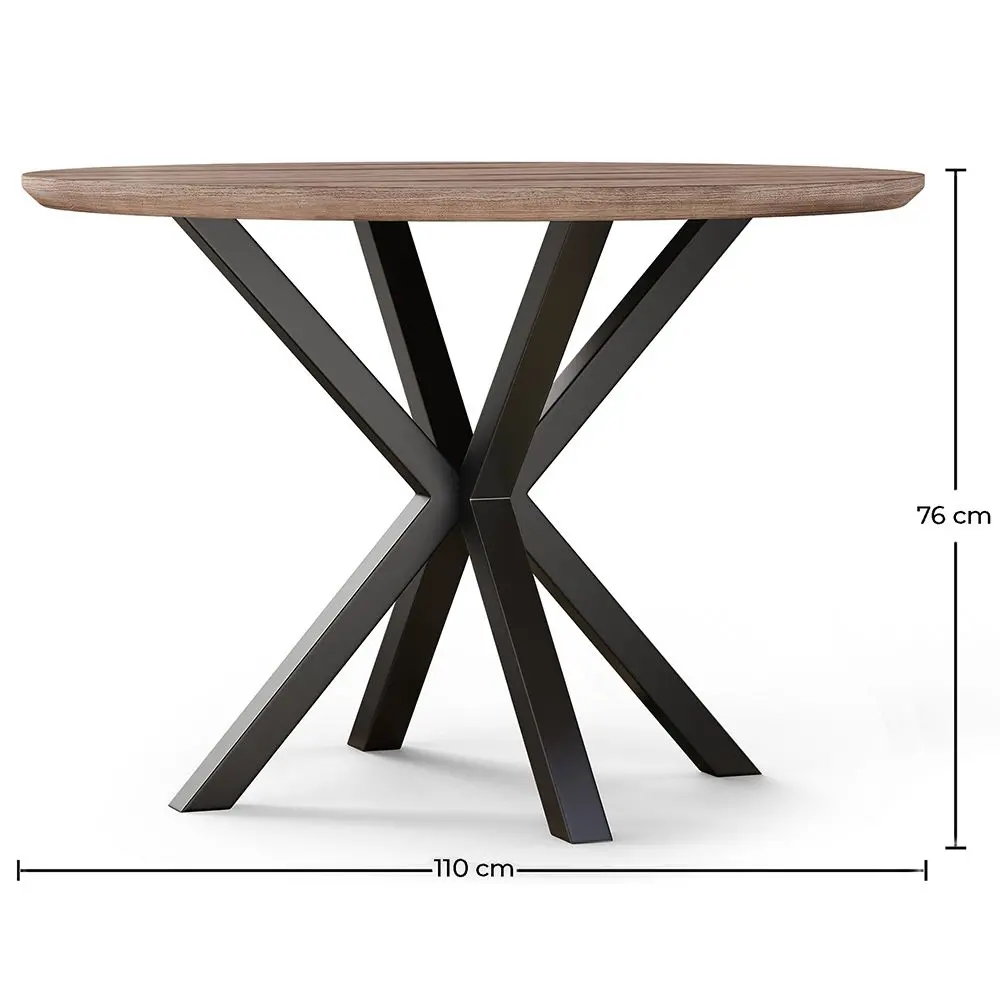 Deze industriële ronde eettafel is een uniek en robuust stuk, perfect voor restaurants en hotels die op zoek zijn naar moderne decoratie. De houten basis en metalen poten geven de tafel een retro uitstraling, terwijl de superieure kwaliteit ervoor zorgt dat deze jarenlang in onberispelijke staat blijft. Onze ronde tafel heeft een diameter van 110cm, wat het mogelijk maakt om tussen de 6 en 7 gasten te ontvangen.