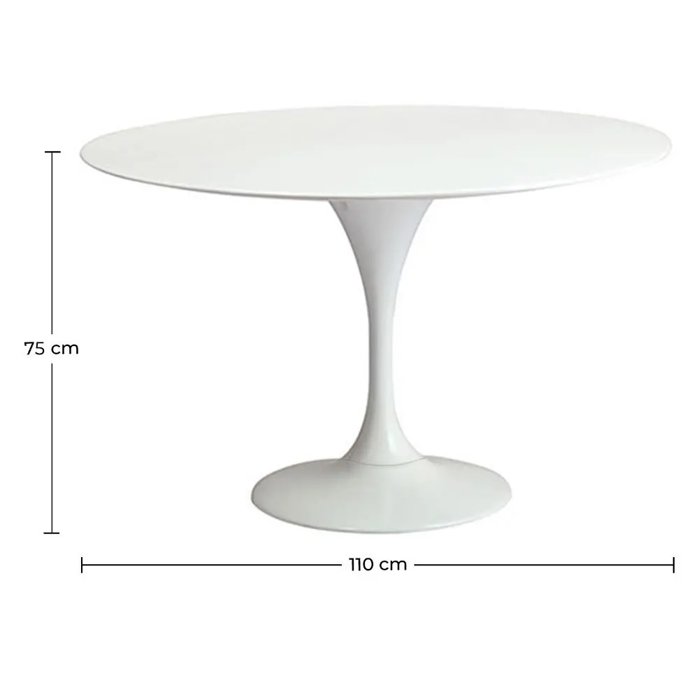 Gemaakt van glasvezel, de ronde Tulipa Tafel - 110cm is onderdeel van de woonkamer meubelcollectie samen met de Tulipa stoel en fauteuil, die een must-have zijn geworden in de wereld van hedendaags design. Zoals alle producten uit deze collectie, heeft dit model een uniek en centraal onderstel, wat stabiliteit, stevigheid en ruimte biedt. Het 110 cm blad zal je alle ruimte bieden die je wilt.