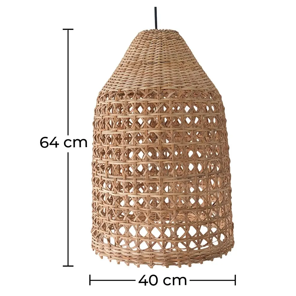 Deze klokvormige rotan hanglamp is een on-trend stuk dat een meer gerichte lichtbron biedt en zacht licht dat door de geweven rotan kap komt. Dit stuk in boho-stijl neemt weinig ruimte in beslag en ziet er perfect uit in een eetkamer, keuken, kantoor, binnen en buiten. Hij brengt stijl en geeft tegelijkertijd licht.
