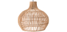 Geweven rotan verlichting zal een ontspannen sfeer toevoegen aan een woonkamer. Dit is een rotanlamp met een vaasvormige kap. Het gebogen silhouet en het natuurlijke rotanweefsel geven een kustsfeer.