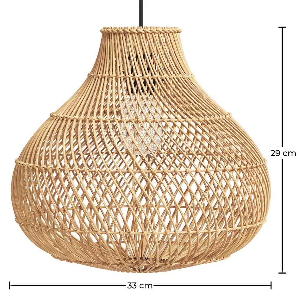 Deze prachtige hanglamp combineert perfect de rustieke elegantie van rattan met de boho-charme van het ontwerp. Rattan, een natuurlijk en duurzaam materiaal, is vakkundig gevlochten om een open en lichte structuur te creëren die het licht op een warme en gezellige manier laat filteren. De natuurlijke kleur van rattan accentueert zijn ambachtelijke uitstraling en benadrukt de schoonheid van de met de hand geweven vezels. De vorm van de hanglamp is organisch en vrij, met zachte en vloeiende rondingen die een vleugje beweging en dynamiek toevoegen aan elke ruimte, waardoor het ideaal is voor zowel thuis als voor hotels, restaurants en andere commerciële ruimtes.