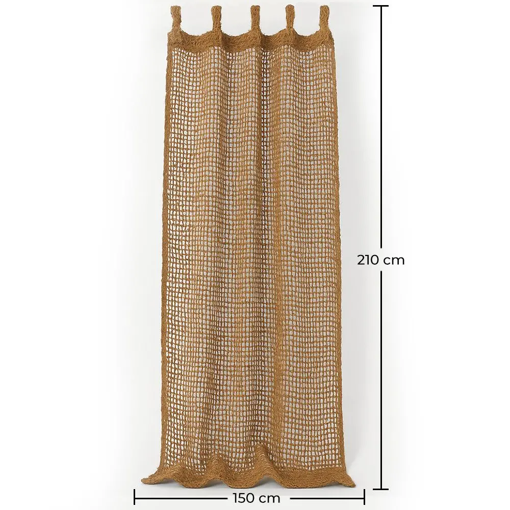 Breng een frisse en exotische touch aan je terras, veranda of tuin met dit natuurlijke kokosvezel outdoor schaduwdoek/gordijn. Met een rustiek, handgemaakt ontwerp en een opengewerkte textuur die de bries doorlaat, is dit gordijn perfect voor het creëren van gezellige, schaduwrijke omgevingen zonder licht te verliezen. Gemaakt van 100% natuurlijke kokosvezel, een duurzaam, sterk en duurzaam materiaal, ideaal voor buitengebruik. Met een afmeting van 210 cm hoog bij 150 cm breed biedt het uitstekende dekking, of het nu wordt gebruikt als pergola gordijn, decoratieve luifel of kamerverdeler. Het bevat geïntegreerde ringen van hetzelfde materiaal voor eenvoudige installatie op palen of touwen. Ideaal voor stijlvolle zonwering en een boho of Mediterrane sfeer in elke buitenruimte.