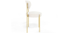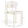 De Martha eetkamerstoel is een charmante en functionele optie. Met zijn gouden metalen frame, ergonomische rugleuning en ronde zitting bekleed met bouclé stof, biedt deze stoel een perfecte combinatie van stijl en comfort. Onze Margot stoel is ontworpen met uw comfort in gedachten. Het biedt uitstekende ondersteuning voor de rug, waardoor u van lange maaltijden kunt genieten zonder ongemak te ervaren. Bovendien past het gebogen ontwerp perfect bij de natuurlijke vorm van uw rug, wat optimale ergonomische ondersteuning biedt. De bouclé stof bekleding is niet alleen aangenaam om aan te raken, maar voegt ook textuur en stijl toe aan de stoel. Met zijn gezellige uitstraling en elegante afwerking, vult de bouclé bekleding het gouden metalen frame perfect aan.