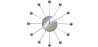 Deze spinnen wandklok bestaat uit twaalf kleine zilveren ballen als satellieten die rond een grote centrale cirkel draaien waarop de wijzers van deze wandklok zijn bevestigd. Het metaal reflecteert het licht. Het vertelt je niet alleen de tijd, het is ook een authentiek decoratief object dat je woonkamer, keuken of slaapkamer zal opfleuren.