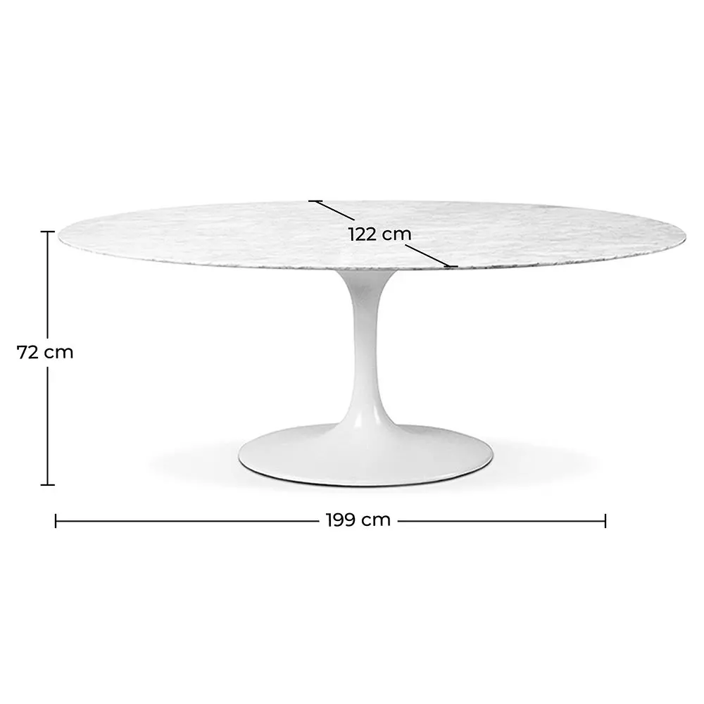 Gemaakt van marmer, deze ovale Tulipa Tafel - 199cm is onderdeel van de woonkamer meubels collectie samen met de Tulipa stoel en fauteuil, die een must-have zijn geworden in de wereld van hedendaags design. Zoals alle producten uit deze collectie, heeft dit model een unieke en centrale voet, die stabiliteit, stevigheid en ruimte biedt. Het 199 cm blad zal je alle ruimte bieden die je wilt.