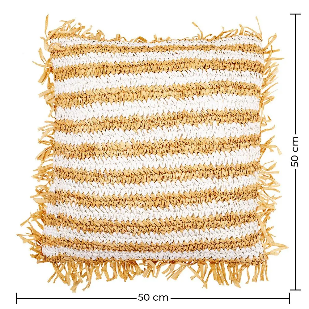 Breng een vleugje natuur en bohemian stijl naar je bank, fauteuil, bed of zitbank met deze raffia kussen Candice hoes. Dit decoratieve stuk wordt geleverd met een kussen. Vierkant van vorm, ze kunnen gemakkelijk hun plek vinden en zowel binnen als buiten decoreren. Wat een toevoeging aan je woonruimtes! Vulling inbegrepen.