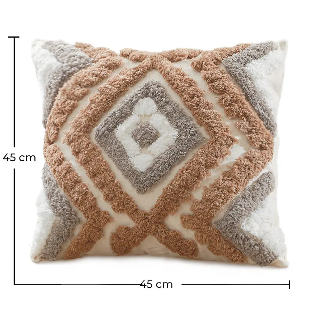 Breng een gezellige sfeer in je woonruimte met Kali, vierkante kussenhoes. Eén zijde heeft getuft materiaal dat, samen met het gebruik van patronen, bijdraagt aan een rustgevend gevoel. Perfecte keuze om je bed, bank of fauteuil subtiel te decoreren in je woonruimte. Vulling inbegrepen.