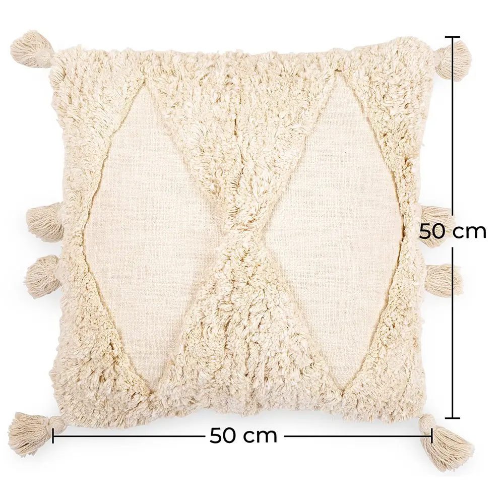 Ontmoet Laily. Een superzacht en comfortabel kussen met een gezellige textuur, een franje en polyvezel vulling. Dit katoenen kussen zal je bank, sofa of fauteuil in een toevluchtsoord veranderen. Vulling inbegrepen.