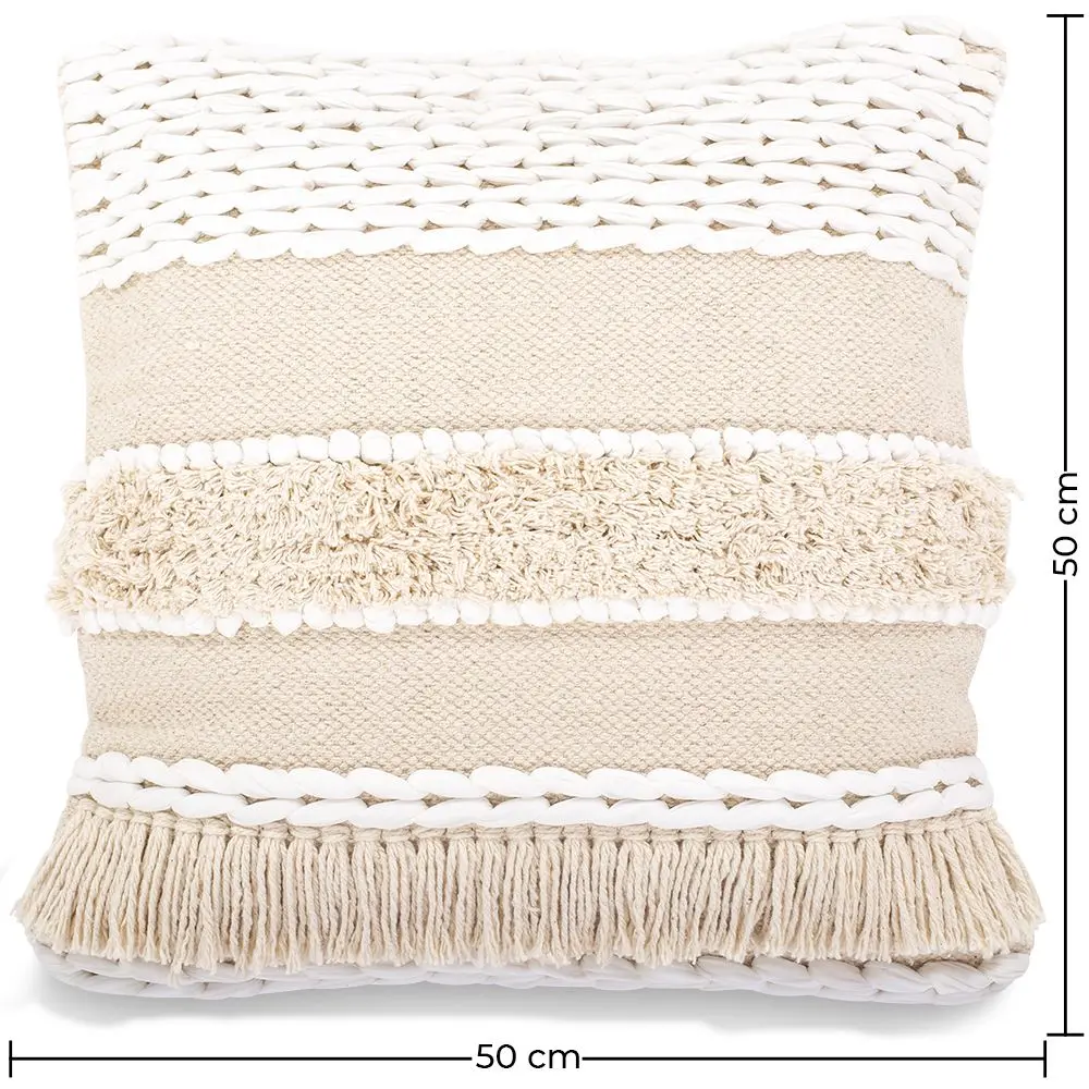 Maak kennis met Hera. Een superzacht en comfortabel kussen met een gezellige textuur, een franje en een polyvezel vulling. Dit katoenen kussen zal je bank, sofa of fauteuil in een toevluchtsoord veranderen. Vulling inbegrepen.