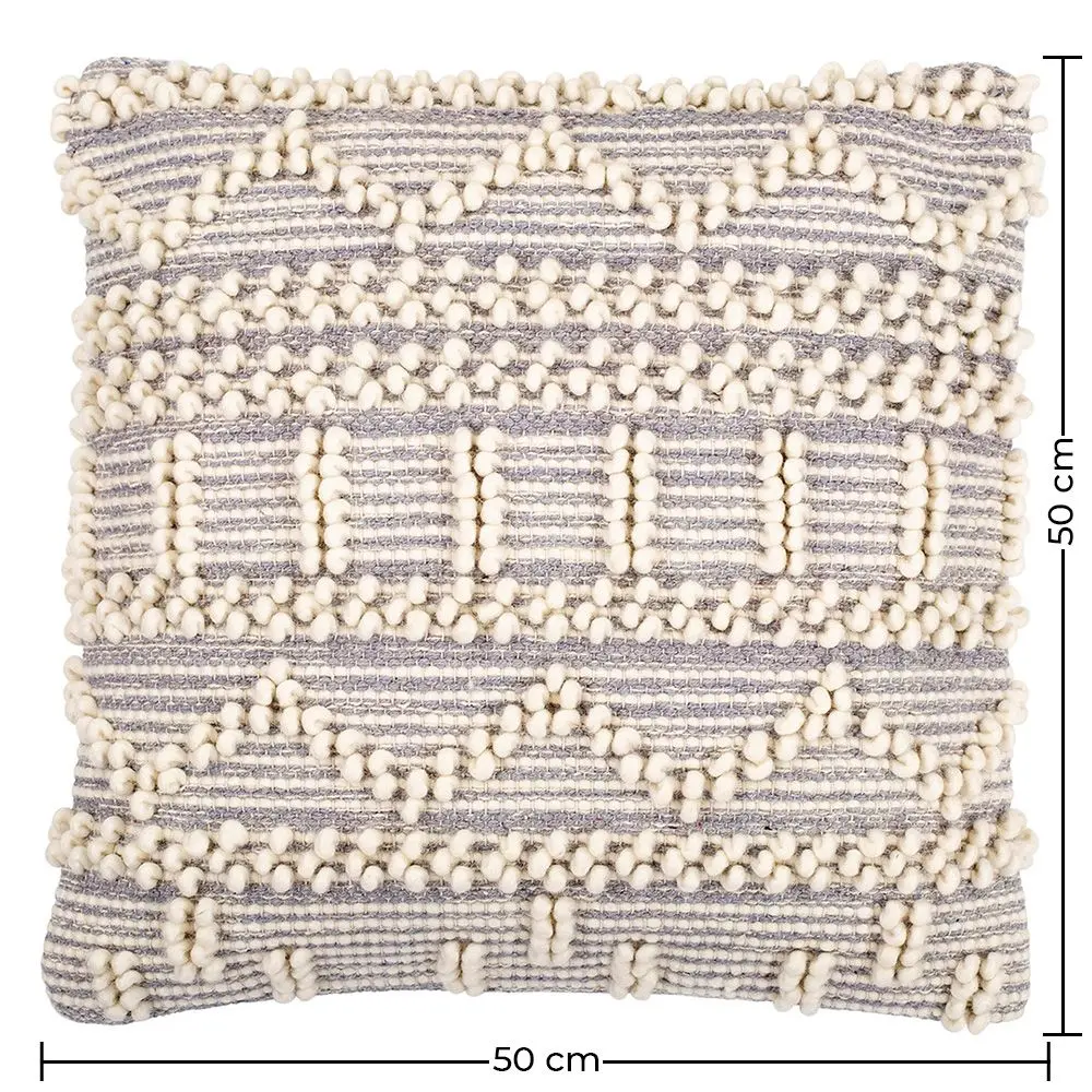 Geef je interieur een nieuwe touch of update je bank met Mirenva. Dit vierkante kussen heeft een mix van katoen en wol textuur. Het is handgemaakt en ziet er subtiel en natuurlijk uit. We kunnen het ons voorstellen op je sofa, bed, bank of fauteuil. Vulling inbegrepen.
