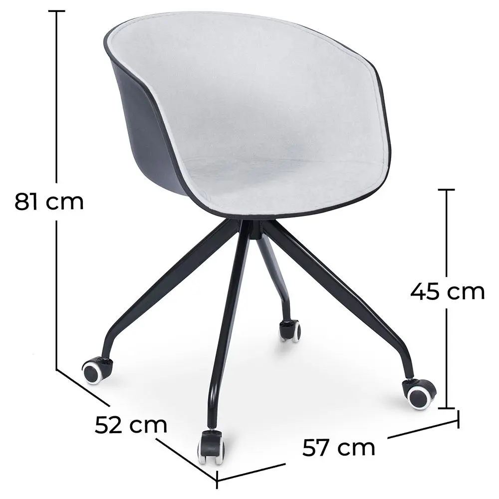 Geniet van comfortabel bewegen in deze bureaustoel met wielen. De royale afgeronde rugleuning is perfect voor kantoorgebruikers van alle soorten. Ontwerpers, ingenieurs en tech-gebaseerde medewerkers kijken vaak naar verschillende plannen en apparaten. Zij zullen de gemakkelijke beweging die deze bureaustoel biedt waarderen. De stoffen zitting en poedergecoate poten maken schoonmaken eenvoudig. Het ontwerp van de stoel valt op in een thuis- of commercieel kantoor. De afmetingen van de stoel zijn een diepte van 52cm, een breedte van 57.5cm, een hoogte van 81cm, en een zithoogte van 45cm. Het is verkrijgbaar in verschillende kleuren.